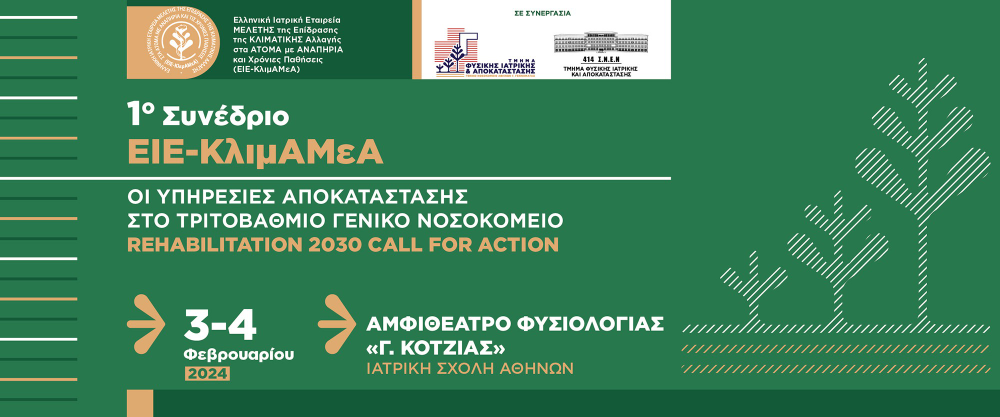 Έχετε ολοκληρώσει επιτυχώς την εγγραφή σας στο 1ο Συνέδριο ΕΙΕ-ΚλιμΑμΕΑ - Οι Υπηρεσίες Αποκατάστασης στο Τριτοβάθμιο Γενικό Νοσοκομείο Rehabilitation 2030 Call for Action. Σύντομα θα λάβετε ένα επιβεβαιωτικό email με τα δηλωθέντα στοιχεία.